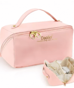 Portacosméticos. Cuenta con un bolsillo interno con cierre, dos compartimentos y tres divisiones internas.