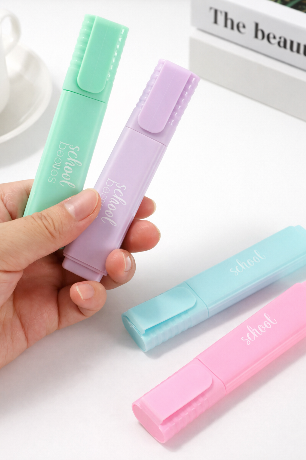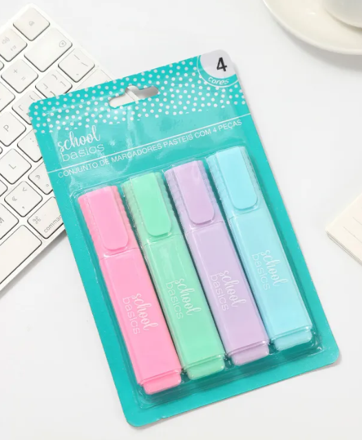 Set de 4 Resaltadores de tono pastel. Ideal para apuntes, planificación o uso escolar.