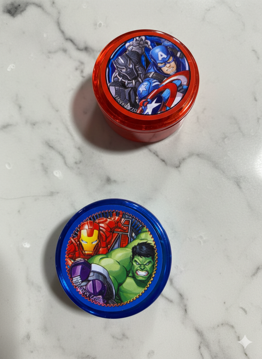Sacapuntas plastico redondo de personaje, con deposito para residuos