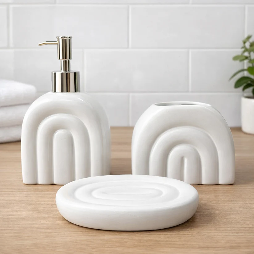 Set de Baño Arcos natural 3 piezas, en caja lisa.