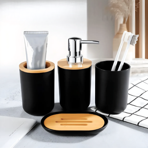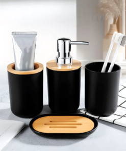 Incluye: Jabonera / Porta cepillos / Taza de enjuague / Dispenser de jabón