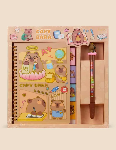 Anotador anillado de tapa dura con 40 hojas rayada.