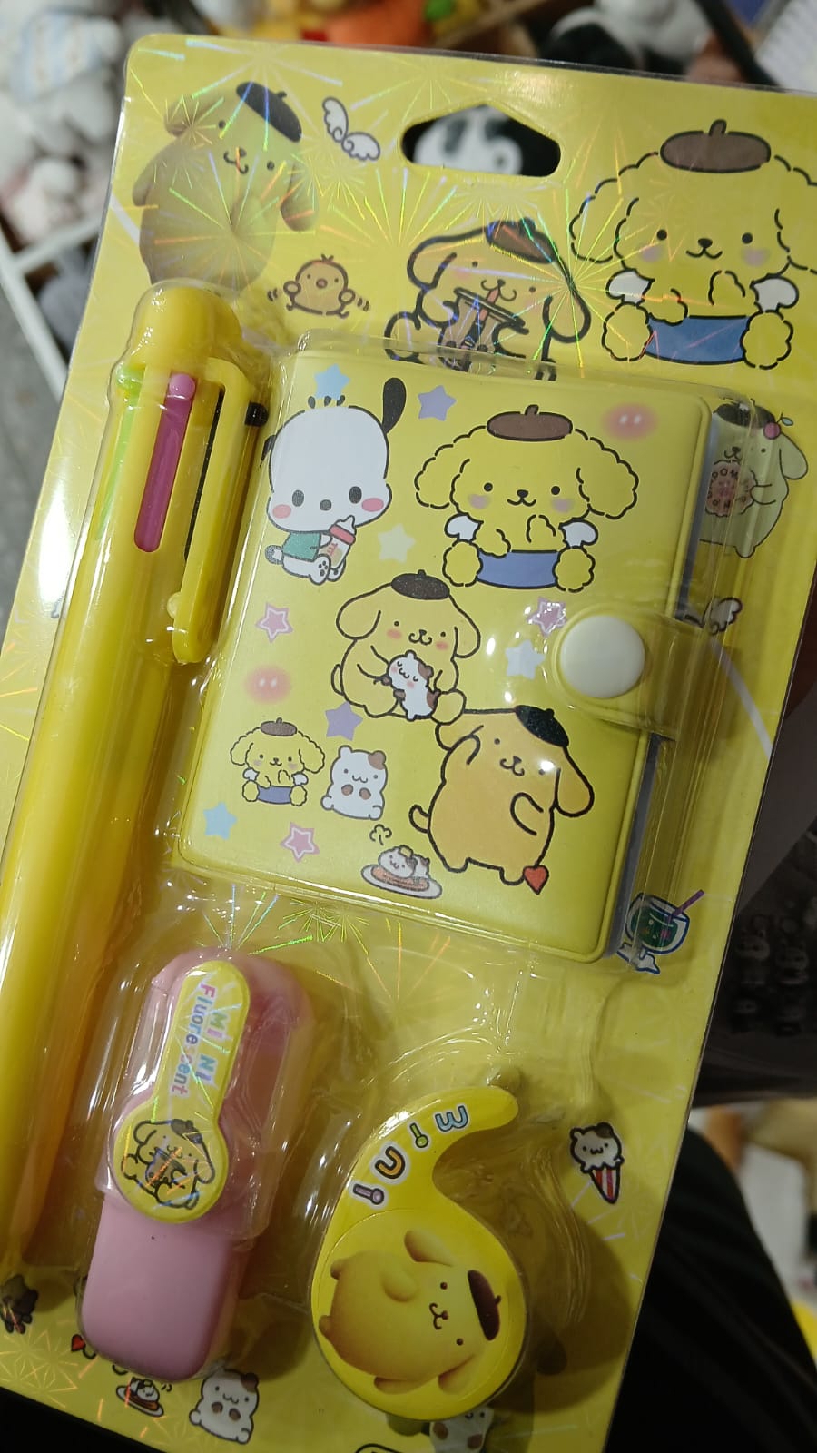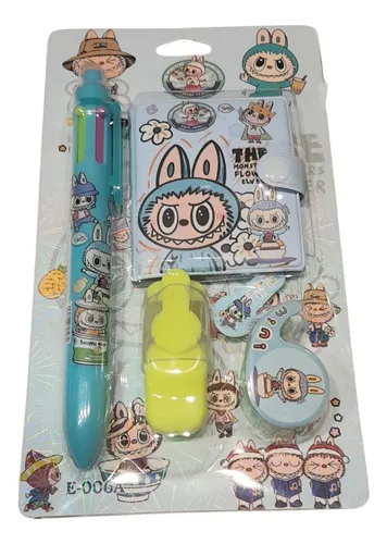 Set de mini libreta + boligrafo + resaltador + borrador