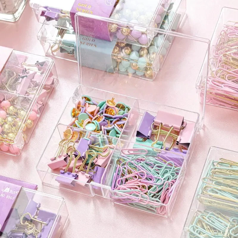 Materiales: PACKAGING: CAJITA PLASTICA TRANSPARENTE CON ETIQUETA CON STAMPING DORADO.