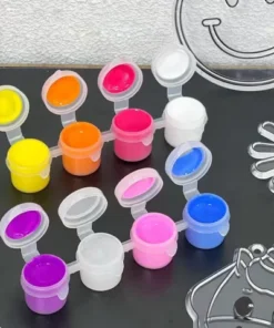 5 potes de pintura en colores pastel.