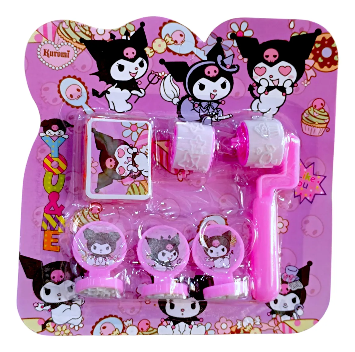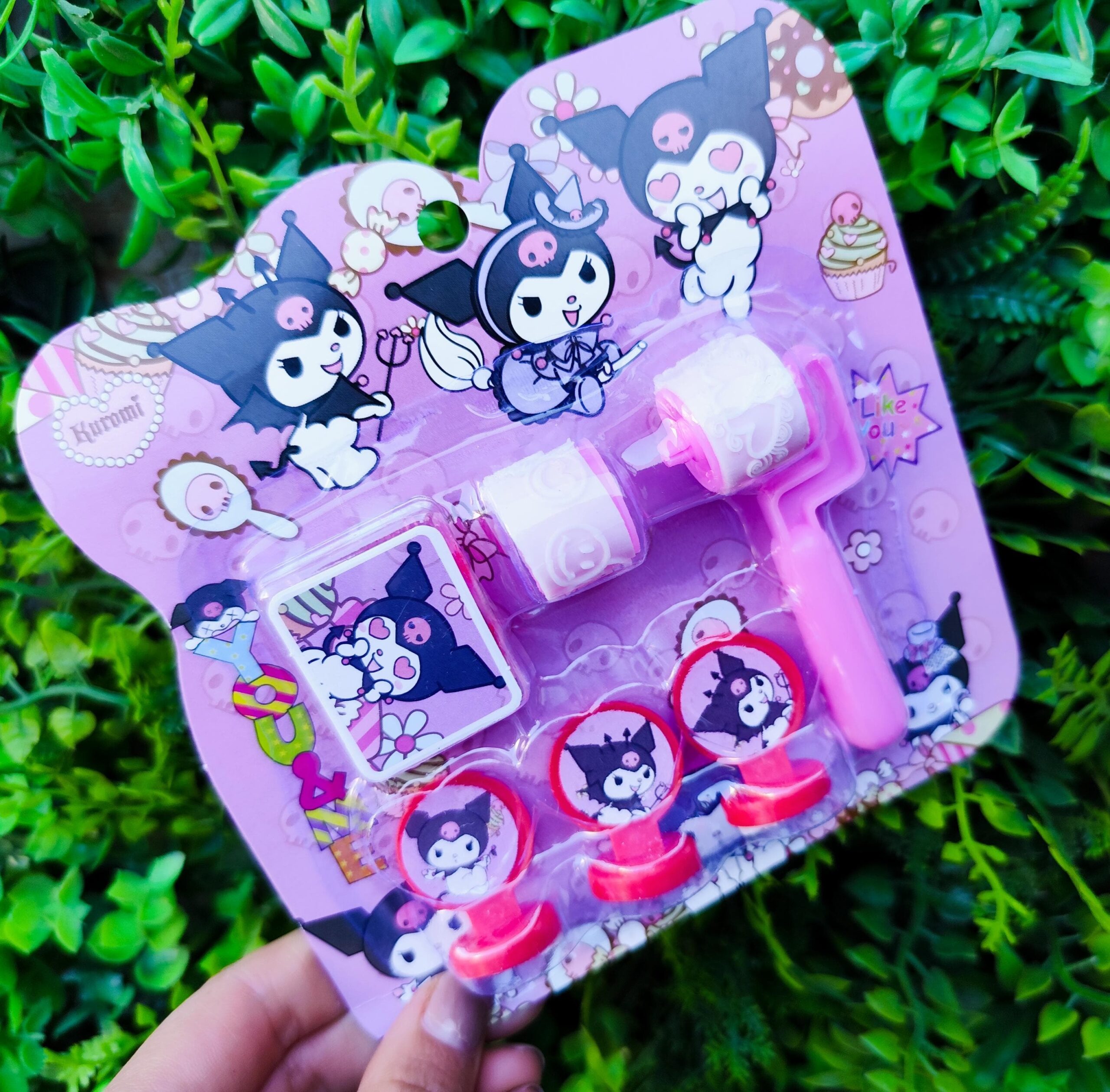 Incluye: 3 sellos individuales , 1 rodillos mas repuesto, y almohadilla de tinta .