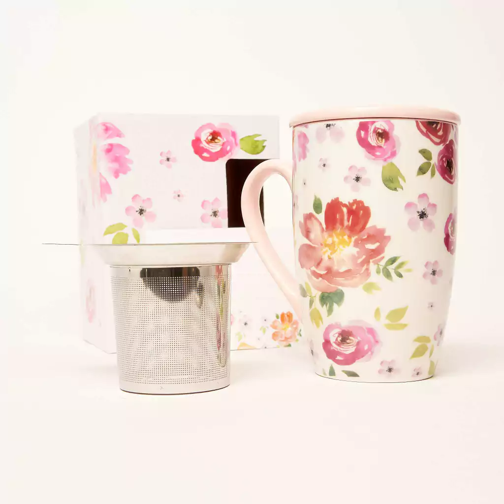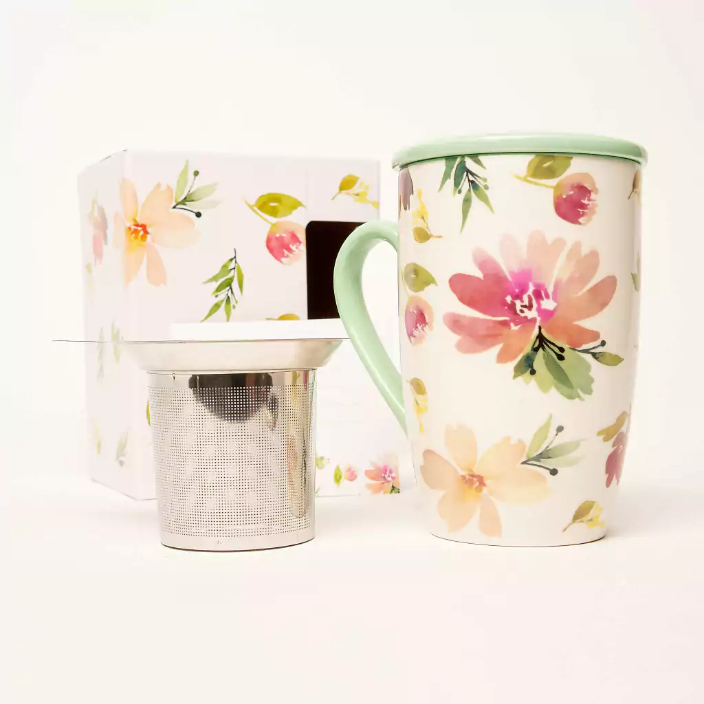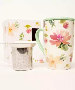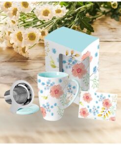 - Taza de Porcelana Flowers con Infusor de acero inoxidable y Tapa.