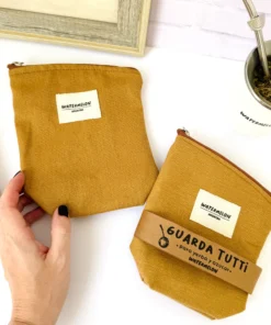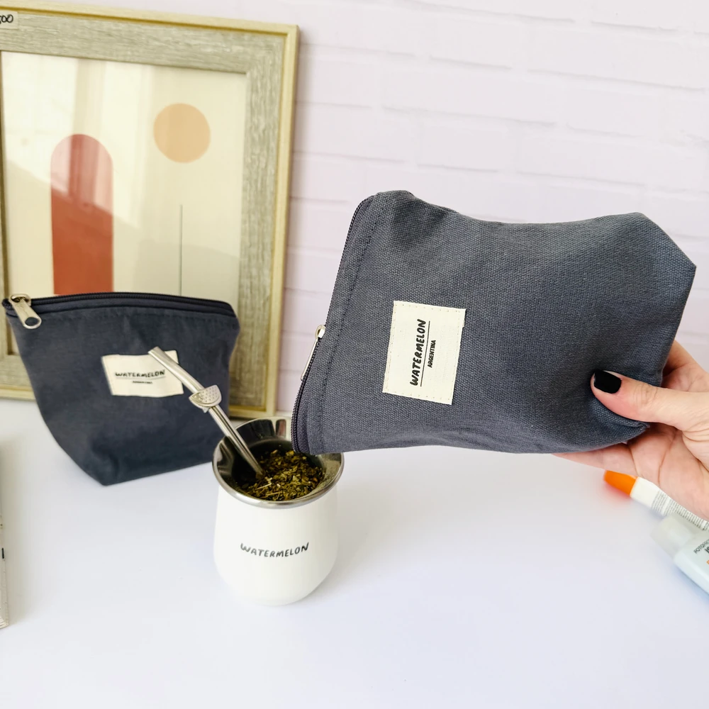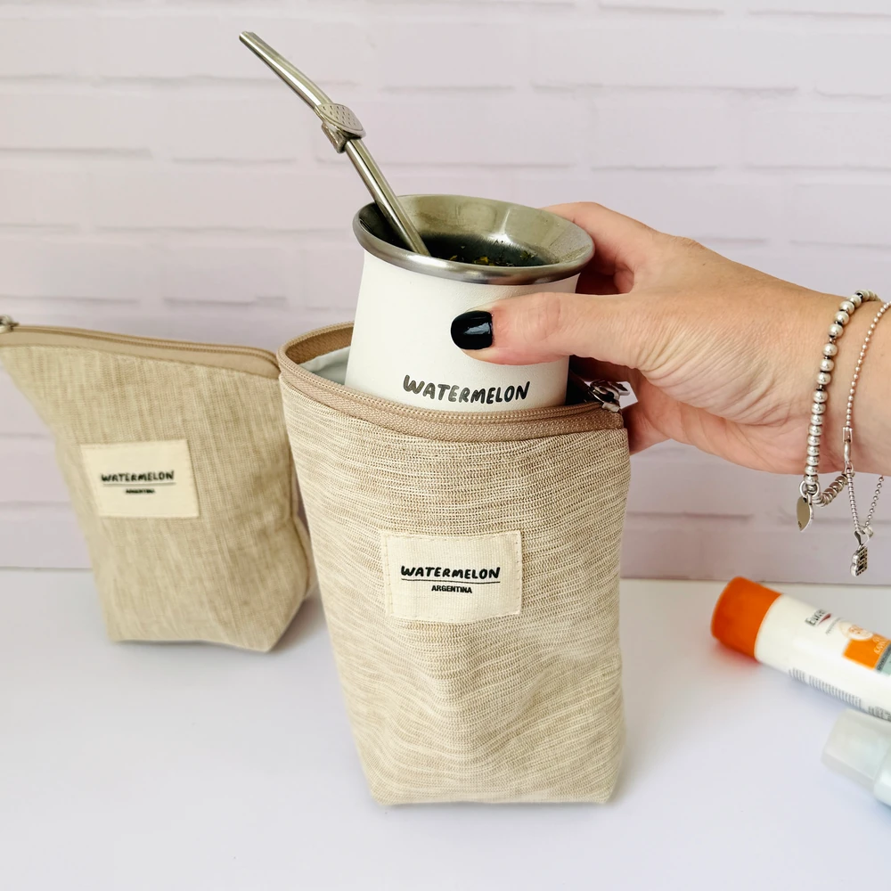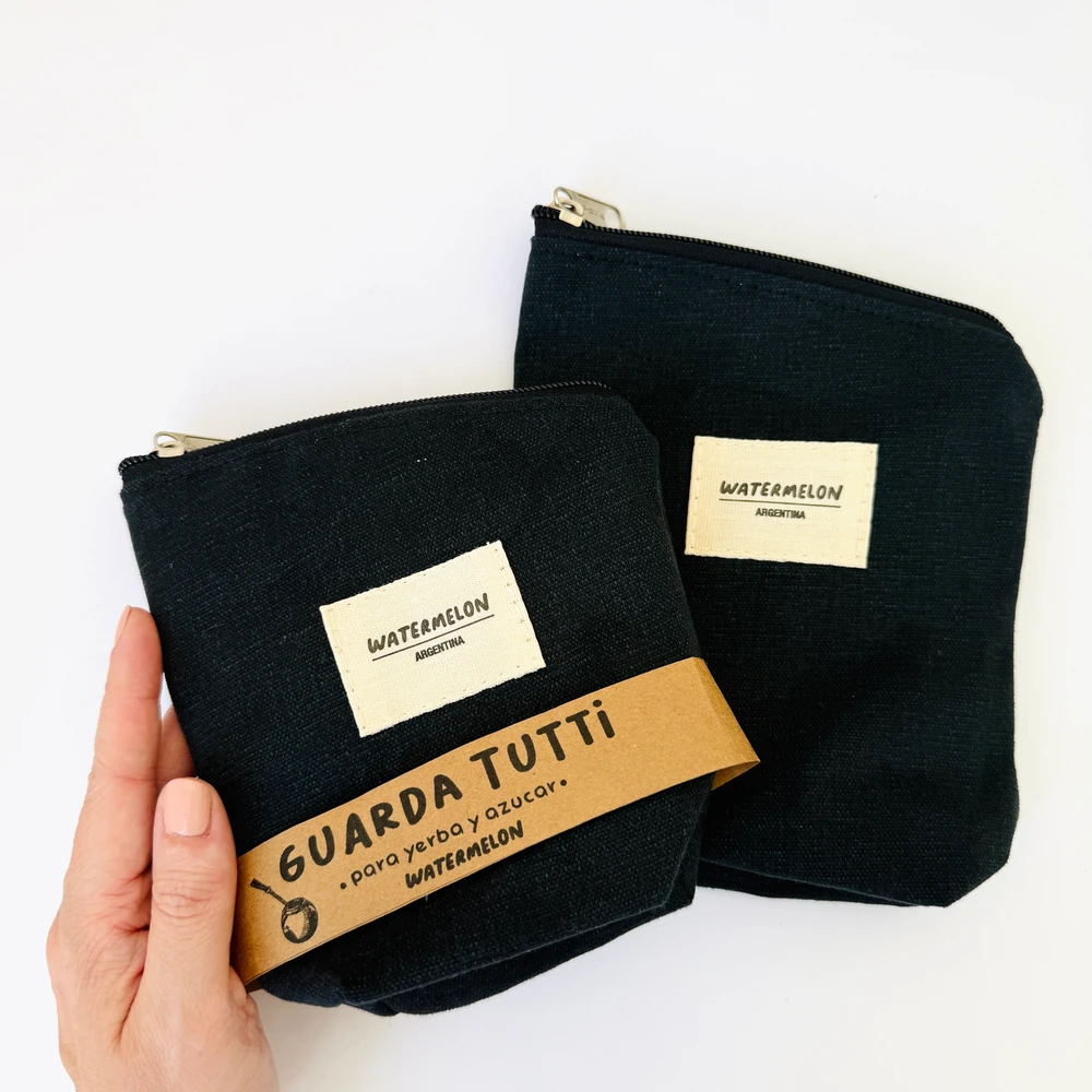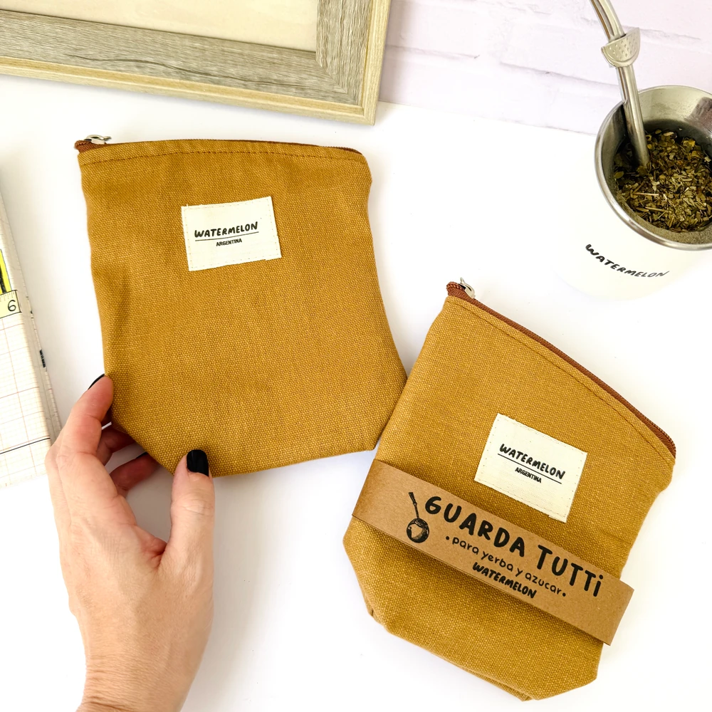 Un set súper práctico de 2 bolsitas de lona, ideal para usar como yerbero y azucarero y ahorrar espacio.