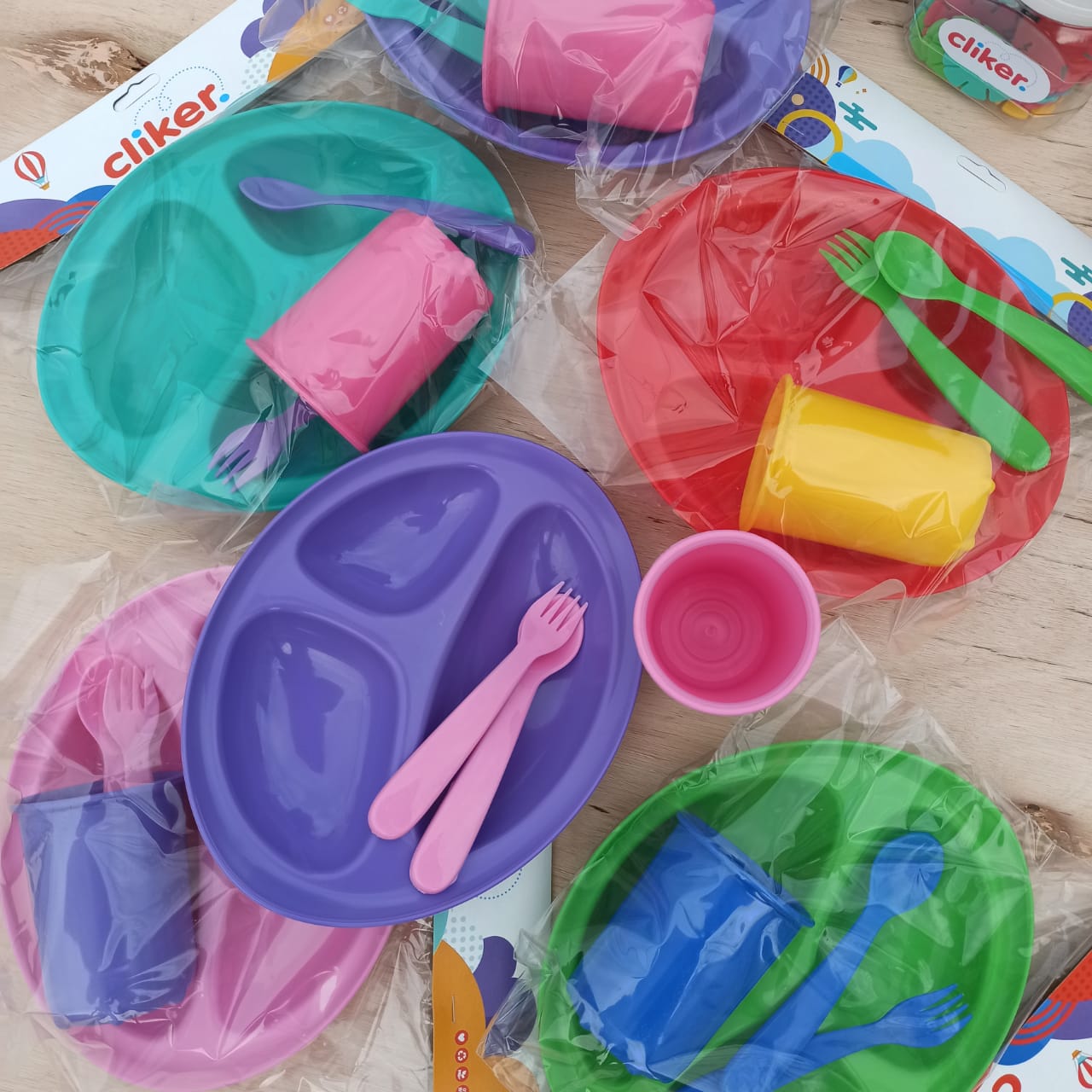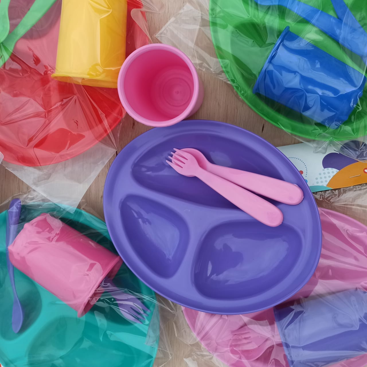 Set Vajilla Plástica : Plato con divisiones + Cubiertos + Vaso. Excelente Calidad