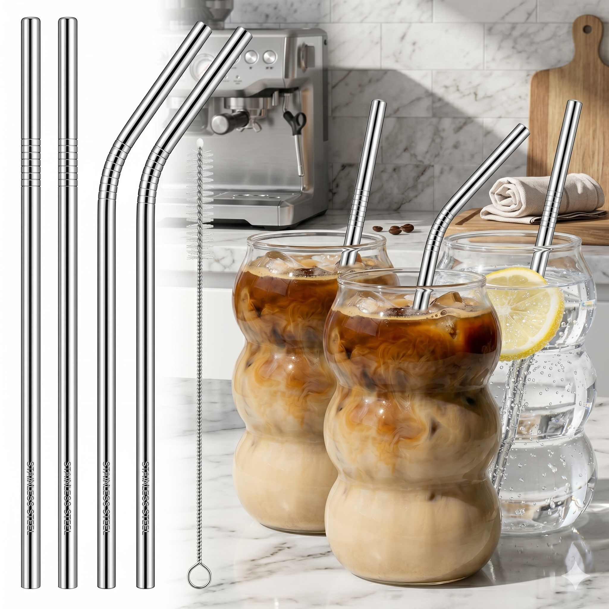 Contenido: 4 bombillas de acero inoxidable y 1 cepillo limpiador a medida.