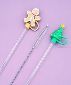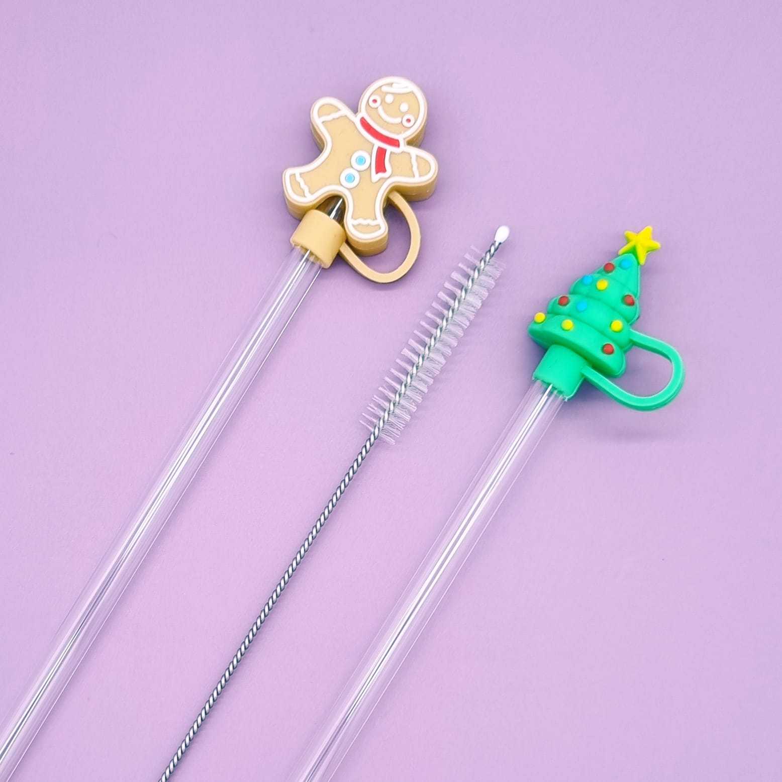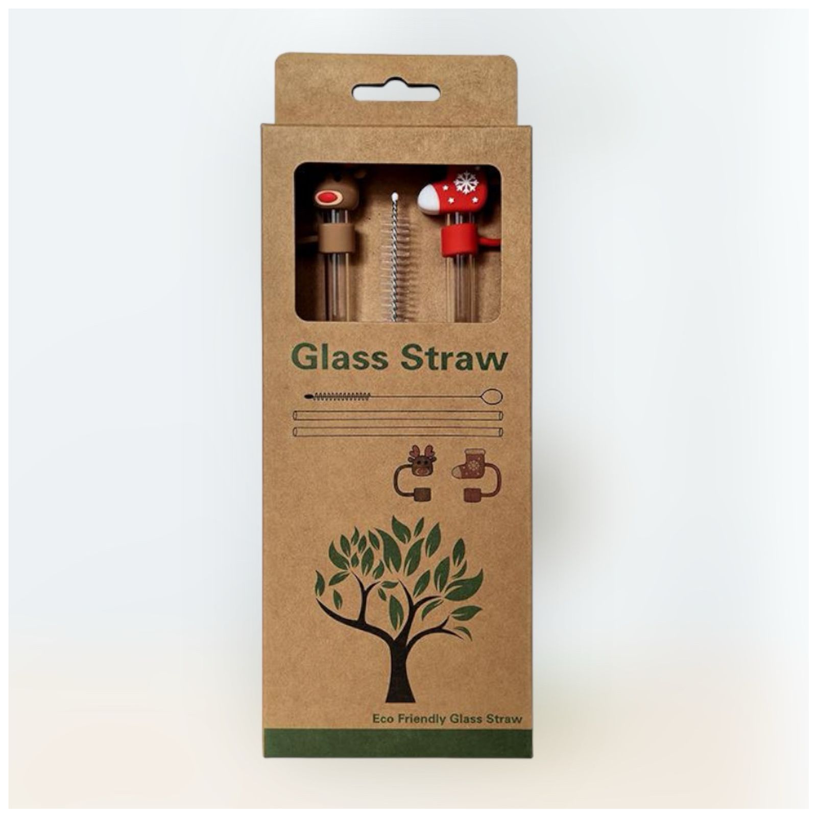 Set de Sorbetes de Vidrio Eco Friendly + Limpiador con Tapas de Silicona Reno & Stocking – 3 piezas