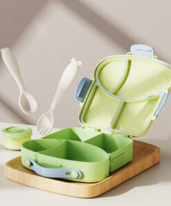 “Taper con divisiones + cubierto y salsero: práctico, cómodo y listo para tus comidas. ???? Ideal para organizar, aderezar y disfrutar. ¡Tu aliado para almuerzos fuera de casa!”