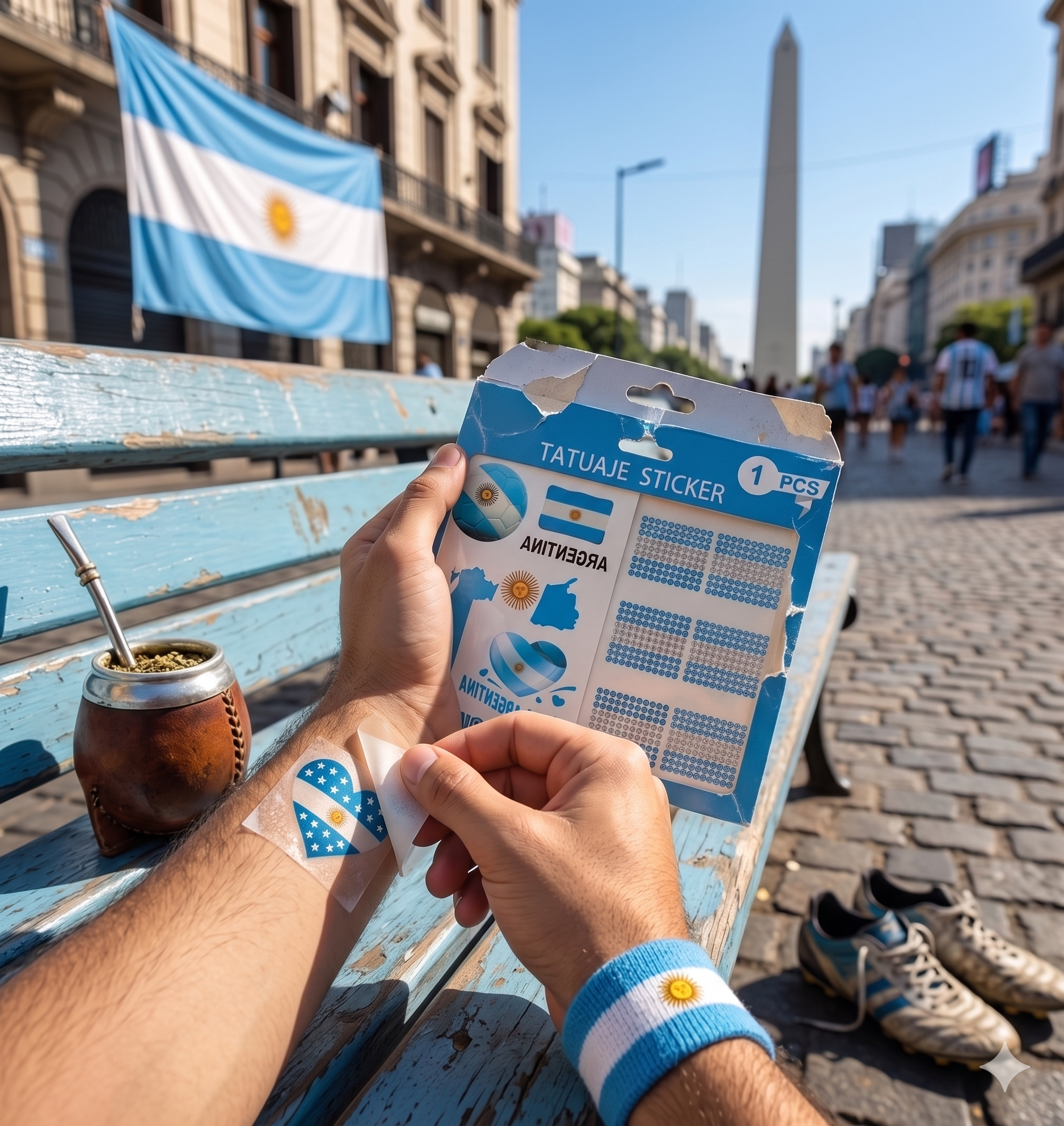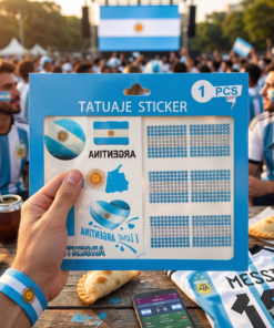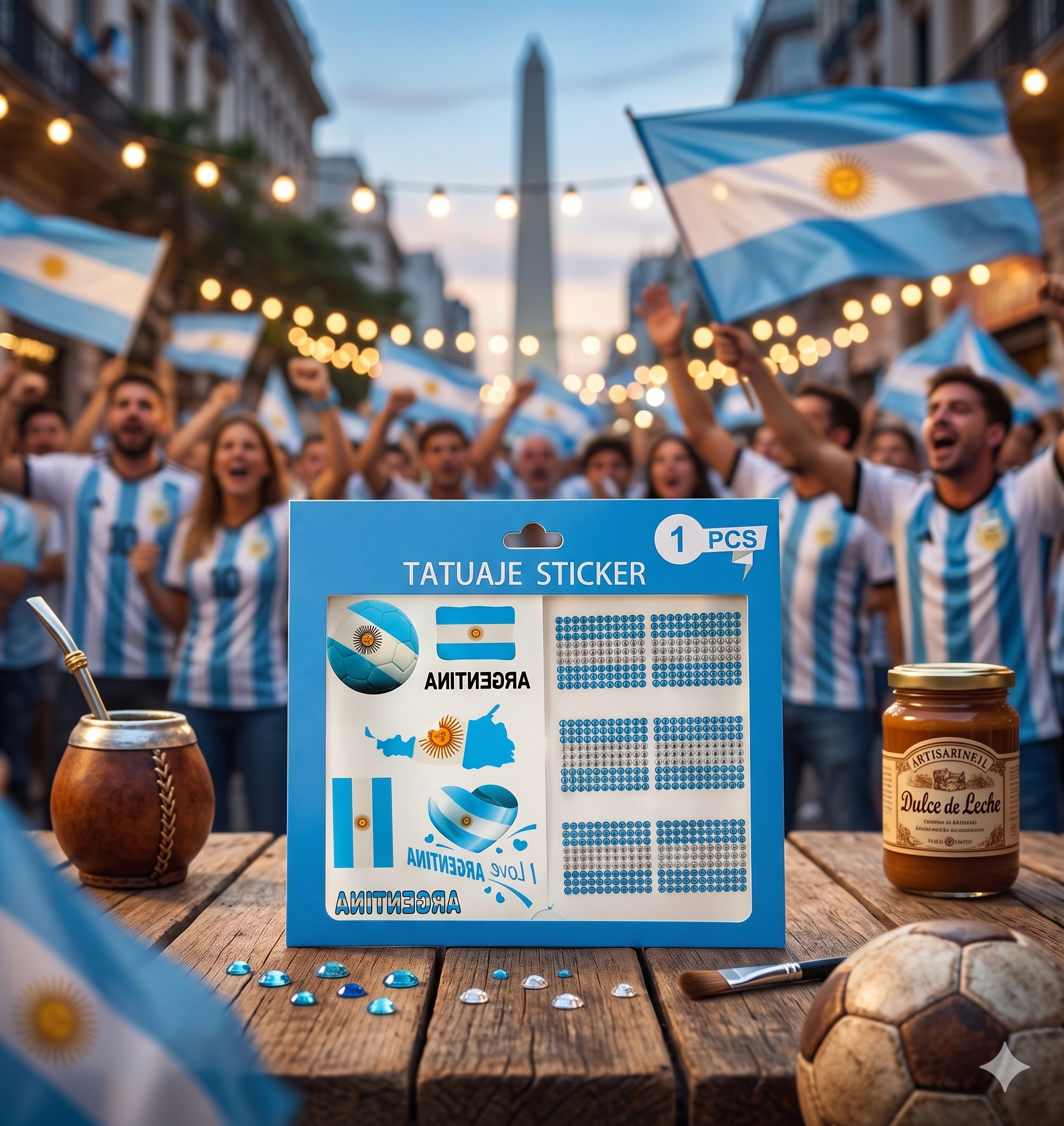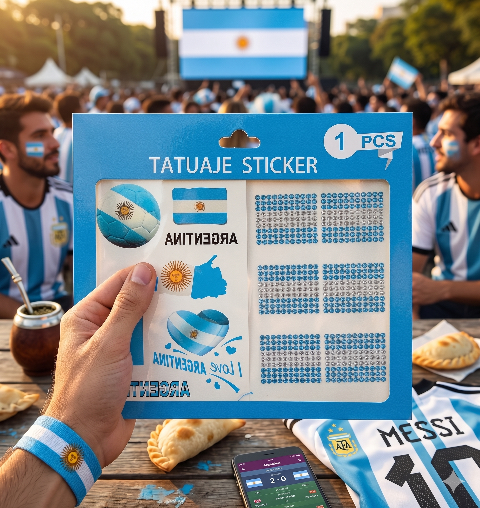 Set de tatuajes temporales con diseño de la bandera argentina.