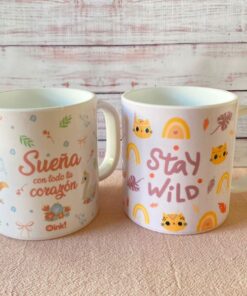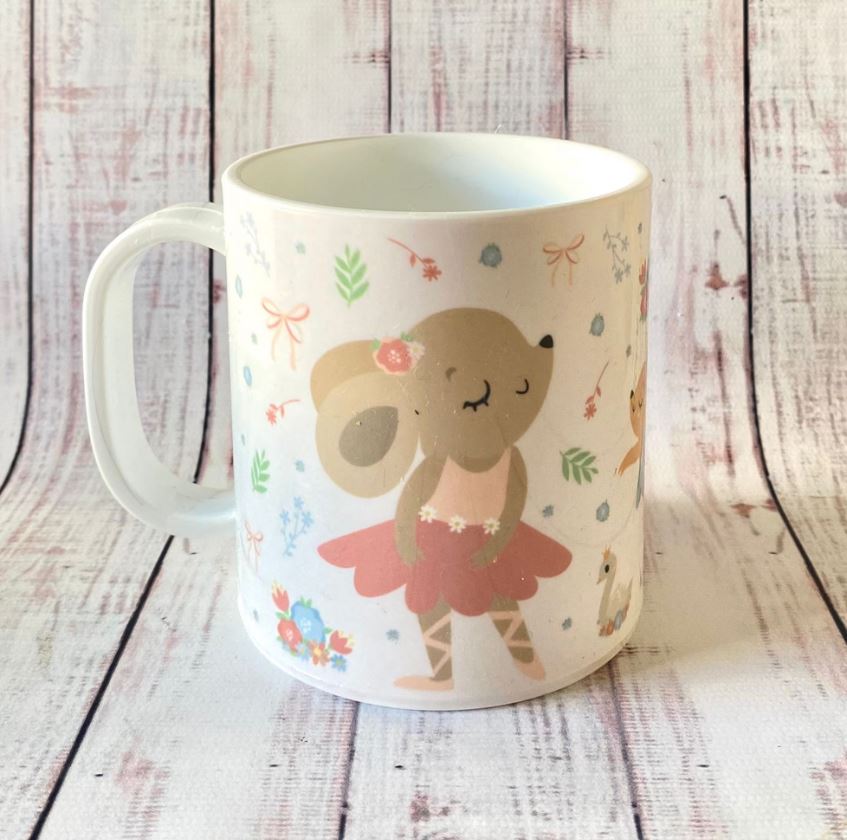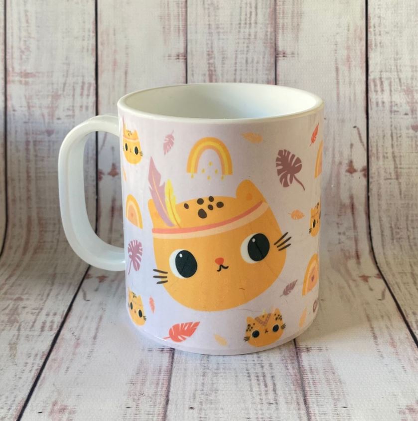 Tazas de melamina con diseños infantiles y asa. Ideales para el cole y el hogar.