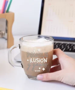 Tazas de vidrio decoradas en serigrafia con los diseños más lindos para todos tus desayunos y meriendas.