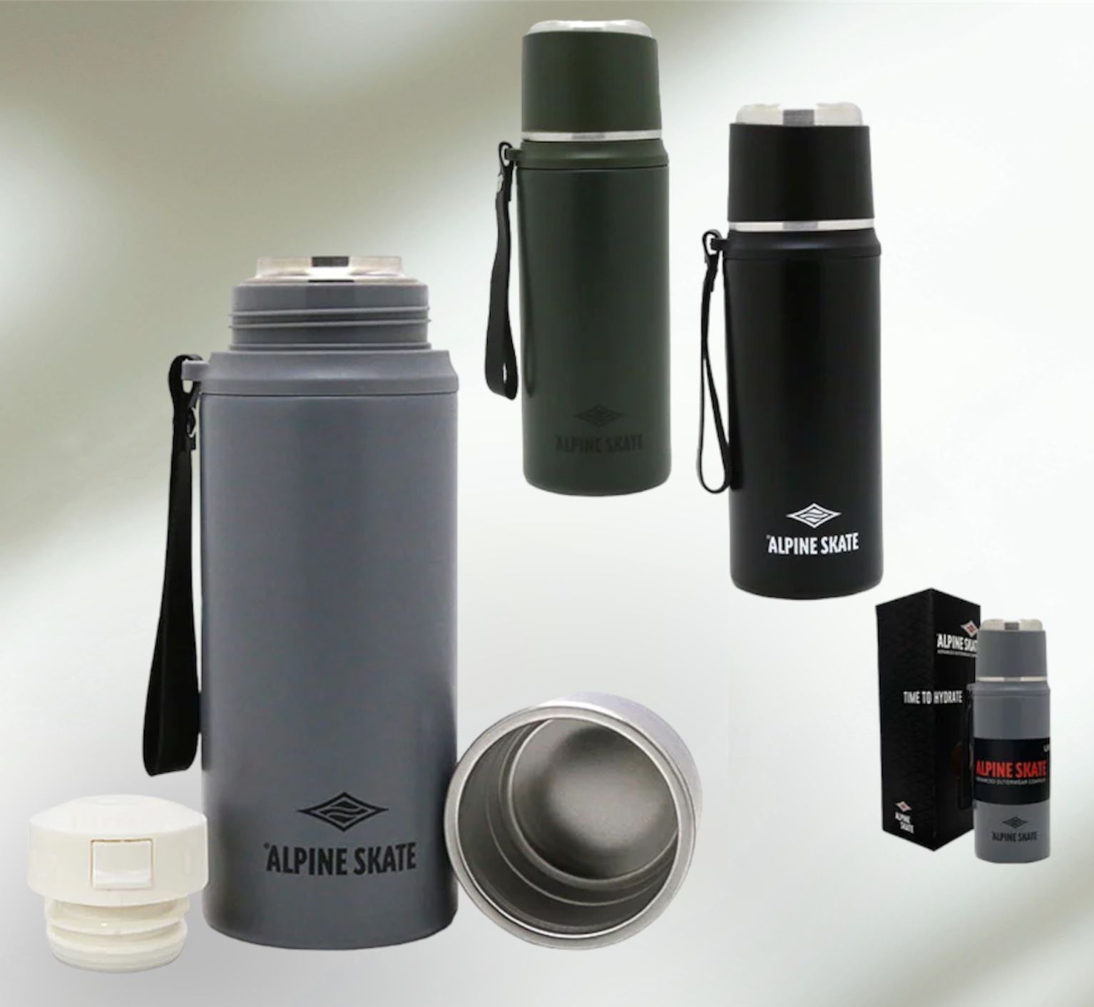 Info: 800 ml, tapa con interna de silicona y vaso, incluye packaging y correa de transporte