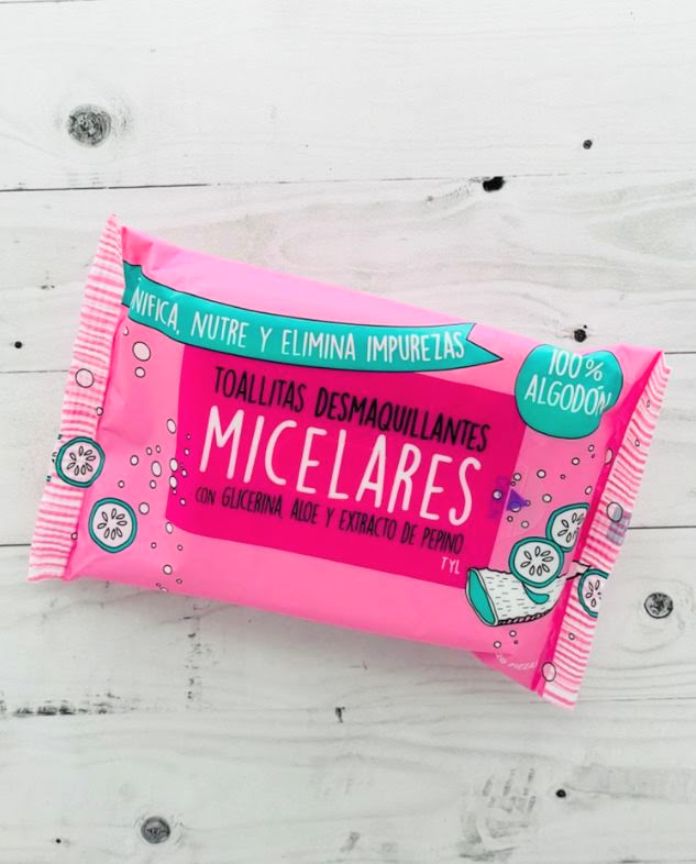 Toallitas desmaquillantes mi celares con glicerina, aloe y extracto de pepino.