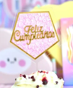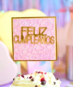 Hermosos topper FELIZ CUMPLEAÑOS PINK PLASTIC