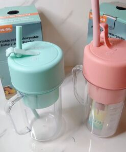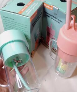 esta licuadora portátil es para usar mientras viaja. Cabe fácilmente en su bolso, lo deja en su automóvil o lo sostiene en su mano para mantenerlo fresco con jugo en cualquier momento.