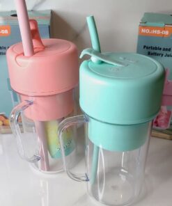 esta licuadora portátil es para usar mientras viaja. Cabe fácilmente en su bolso, lo deja en su automóvil o lo sostiene en su mano para mantenerlo fresco con jugo en cualquier momento.