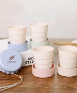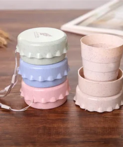 Vaso plegable con sistema telescópico, de plástico resistente, con tapa.