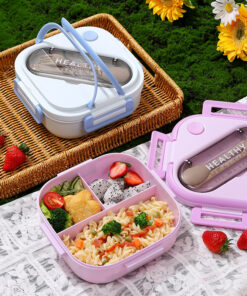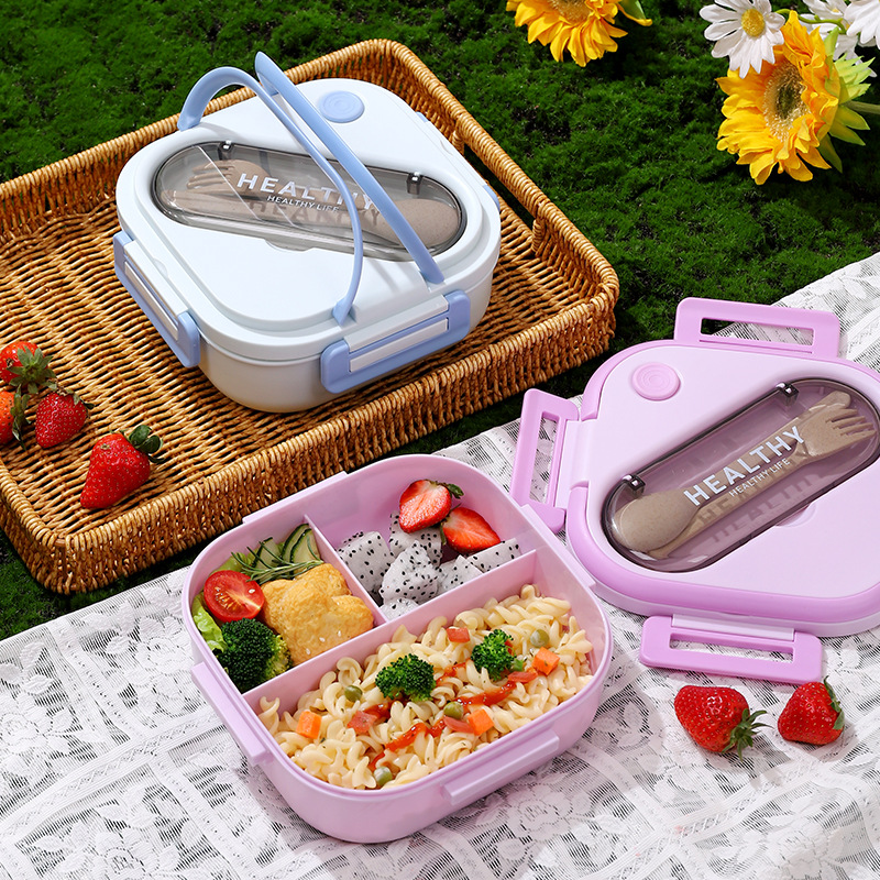 Vianda Cuadrada de 3 Divisiones + Cubierto Healthy- 1300ml