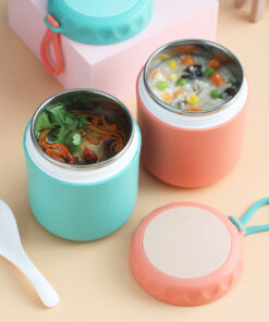 Vianda con tapa a rosca, con interior en acero inoxidable, que te permite mantener la temperatura de la comida.