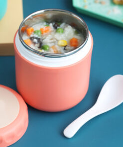 Vianda con tapa a rosca, con interior en acero inoxidable, que te permite mantener la temperatura de la comida.